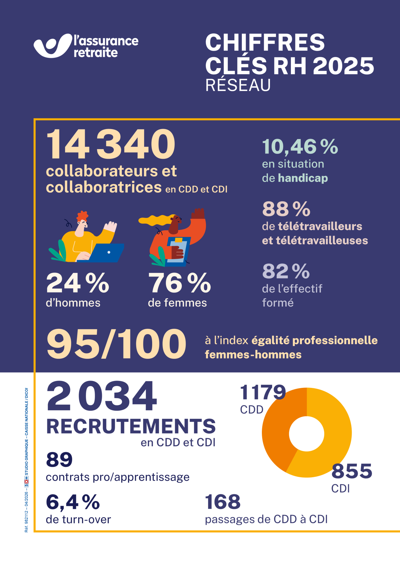 Avec 140 métiers représentés, l’Assurance retraite s’engage à offrir un environnement de travail inclusif et stimulant, où chaque employé peut donner du sens à son métier. Découvrez les résultats de notre politique RH engagée à travers les chiffres de l’année 2025, et rejoignez-nous pour contribuer à une mission de service public essentielle :